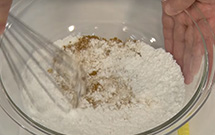 ①ボールにAを入れて泡立て器で混ぜる。Bを加えて滑らかになるまでさらによく混ぜる。