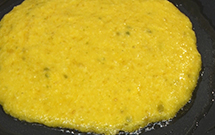 丸く形作り、片面が焼けたら裏返し、全体に火を通す。同様に計2枚焼く。
